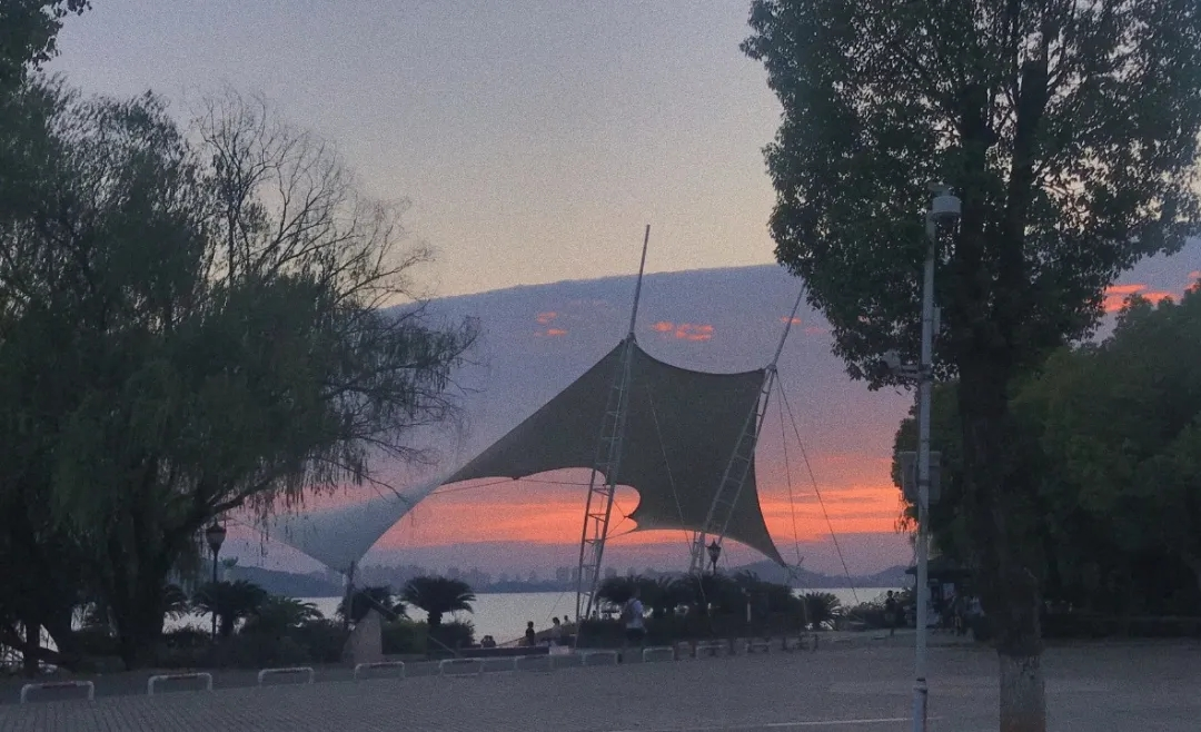 映照湖面一片斑驳。