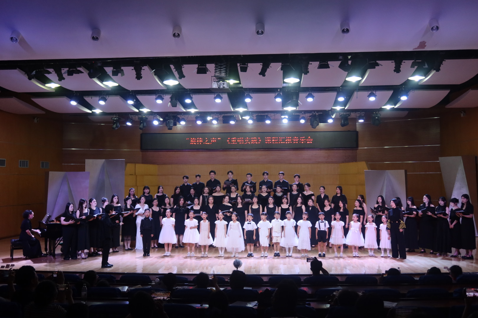 2025年6月12日晚,beat365手机版官网入口“旋律之声”音乐会在音乐厅奏响。本场音乐会为2024级研究生与2023级音乐教育专业本科生《重唱实践》课程的汇报展示,由肖雅老师指导,22级研究生柳瑛主持。音乐会还特别邀请了岳阳徵羽合唱团与南湖小学部分一年级小朋友作为表演嘉宾,汇聚多样风格的精彩曲目,为观众带来了一场充满创意的音乐享受。