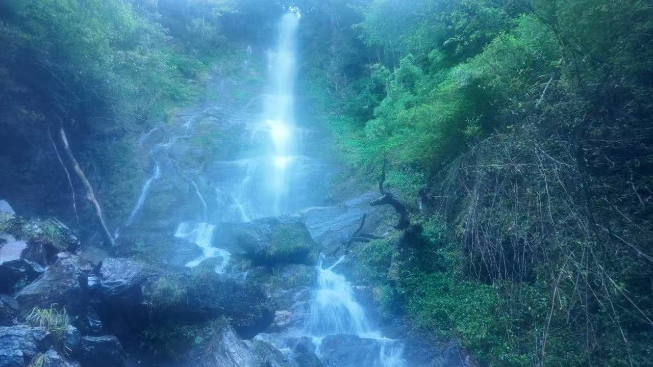 经过近两小时徒步,团队抵达白水洞瀑布。只见水流从数十米高的崖壁倾泻而下,形成“白练悬空”的壮观景象;水流撞击底部潭水产生的水雾随风飘散,在阳光照射下偶尔可见彩虹。成员们通过近距离观察、拍摄记录等方式,详细了解了瀑布的水文特征及周边生态环境。