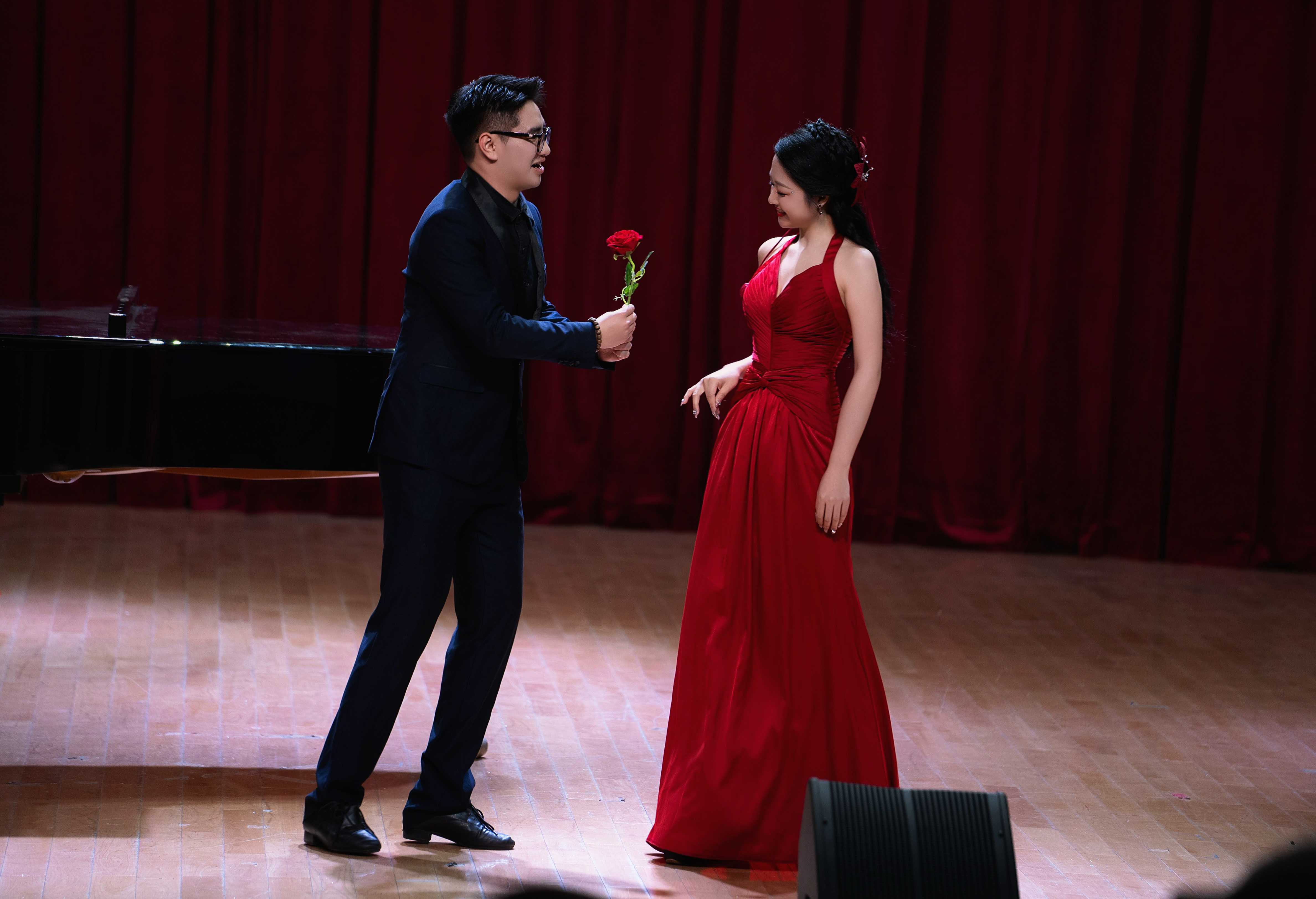 下半场,她继续用歌声传递温度:陈道斌词、胡廷江曲的《爱莲说》唱出莲花的清雅与高洁。勃拉姆斯的《徒劳小夜曲》传递出细腻的情感。选自歌剧《雷锋》,由吕远作词作曲的《八月十五月儿明》满是对团圆的期盼。樊孝斌词、刘聪曲的《鸟儿在风中歌唱》用歌声描绘出灵动的画面。最后以廖勇的《红玫瑰》收尾,为音乐会画上了动人的句号。