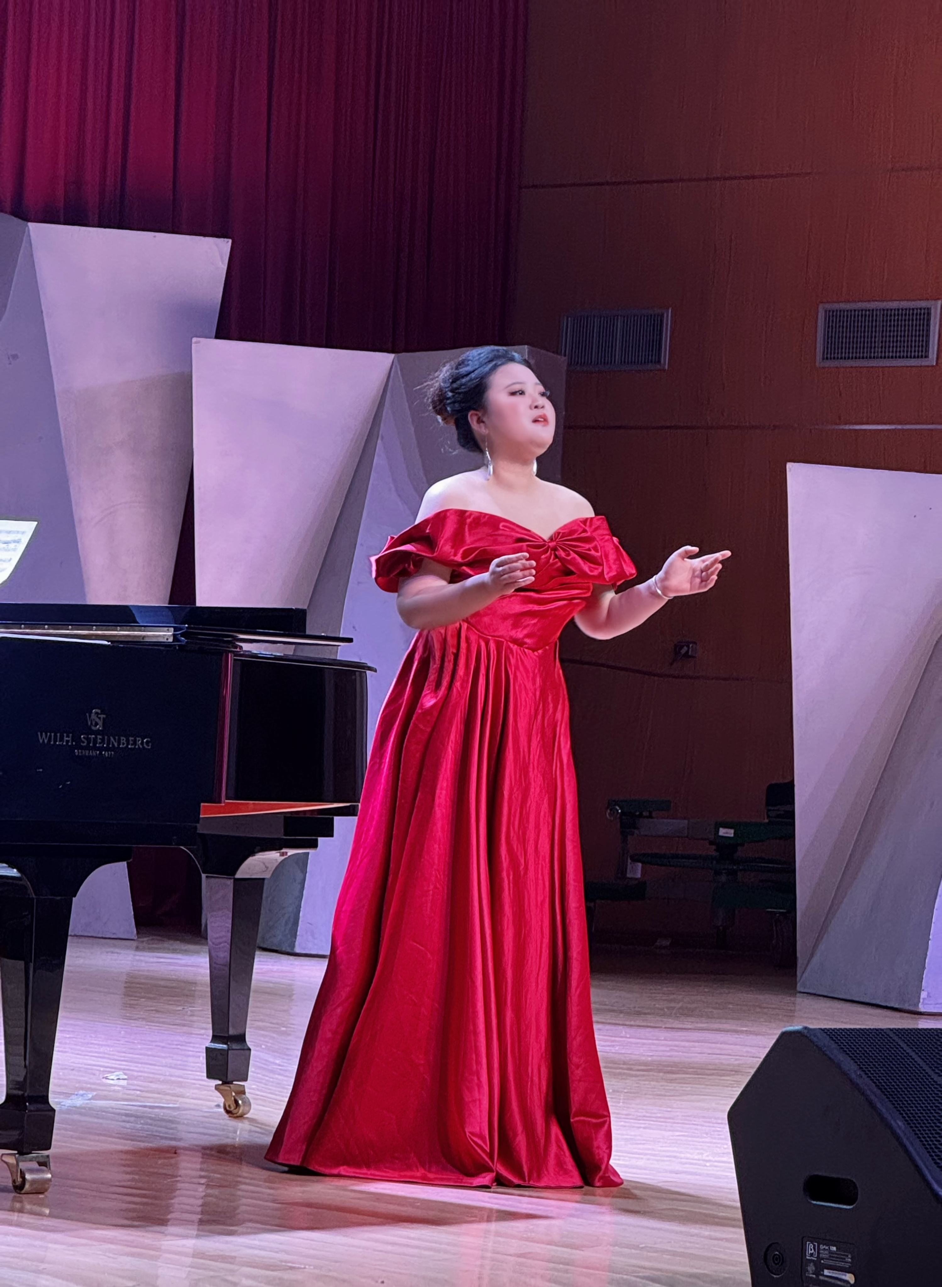 整场音乐会,旷奕以扎实的专业功底、丰富的情感层次,完美诠释了十余首风格各异的声乐作品,赢得了现场师生与观众的热烈掌声。她借旋律纽带贯通传统与现代,以专业底蕴承载家国情思,既是当前学业成果的生动展示,也是开启未来艺术长路的嘹亮前奏。