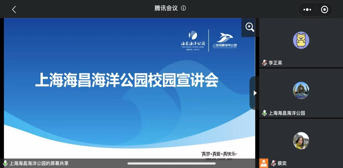 会议分两部分进行,首先,蔡奕就目前就业形势和宣讲单位作简要说明介绍。随后,上海海昌海洋公园负责人通过播放宣传片、PPT展示、当面交流等方式向同学们介绍企业的发展方向、人员需求以及选择该单位的优势等。会上大家积极讨论,并加入企业微信群以便后续沟通。通过此次宣讲使毕业生在选择就业单位上少了些盲目,多了份理性。