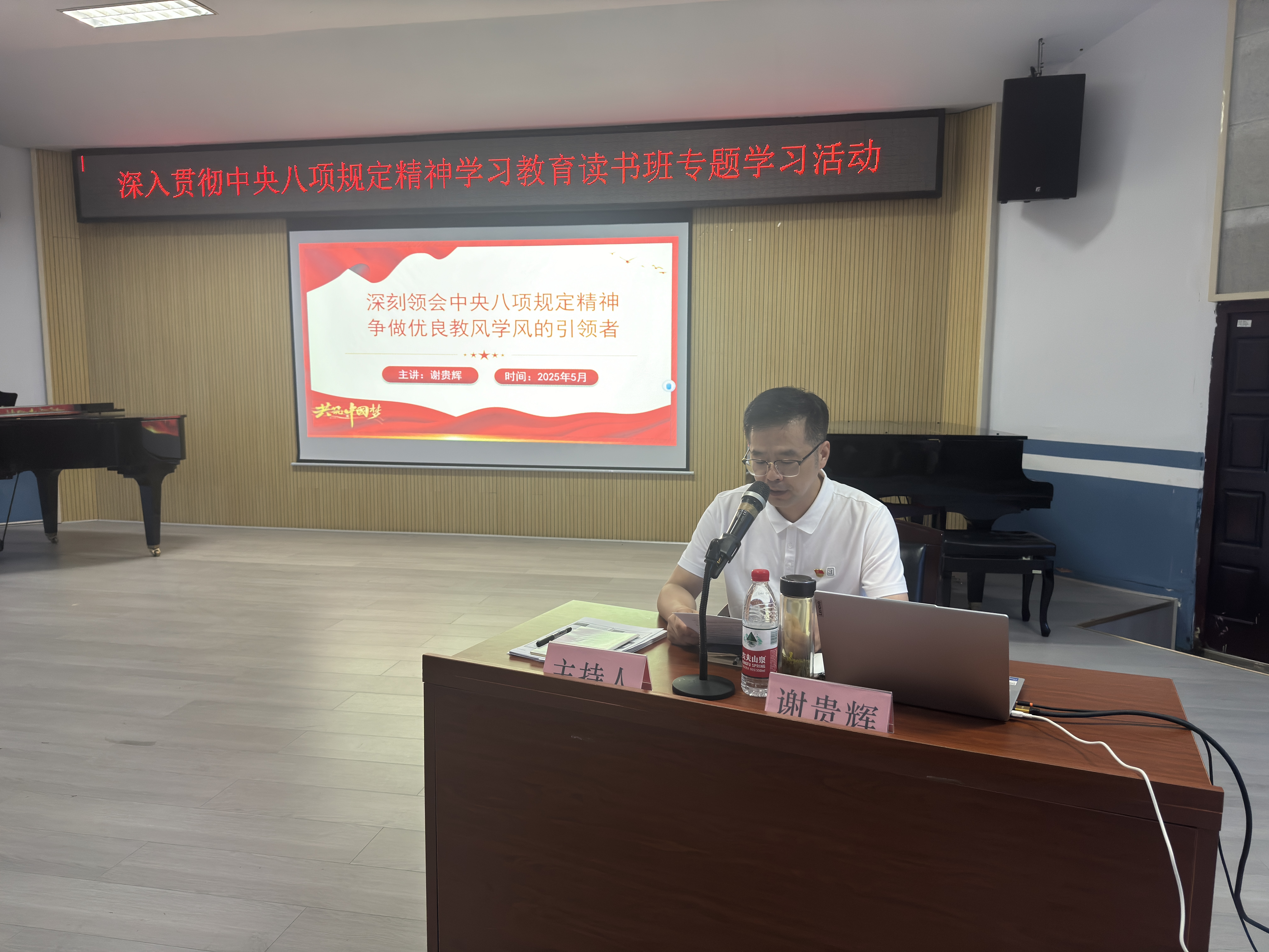 为深入贯彻中央八项规定精神,强化党员干部作风建设,2025年6月11日晚,公司组织开展“深入贯彻中央八项规定精神学习教育读书班专题学习活动”。本次活动由beat365手机版官网入口纪委书记谢贵辉主讲,公司党委书记刘隆华主持,公司领导班子、教师党员、员工党员及入党积极分子参加,在学思践悟中筑牢作风建设根基。