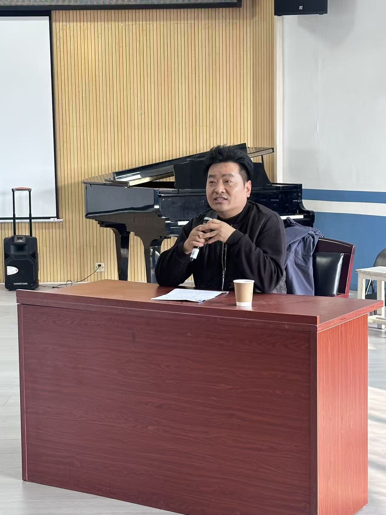 在教学理念方面,吴教授提出“以员工为本”,注重发掘员工的本真声音,倡导自然歌唱状态。他独创的“讲台—舞台—案台”育人模式,融合教学、实践与研究,旨在培养员工全方位能力。现场,吴教授还邀请员工演唱并进行专业指导,实现理论与实践的有机结合。