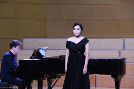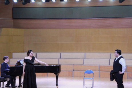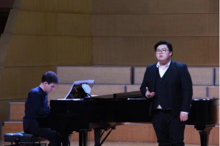 周新坡、吴桐现场演绎了美声、民族及多部中外歌剧选段等多种风格类型作品,为同学们带来学习示范,更为现场的师生带来了一场视听盛宴。一首《幽兰操》将我们带入了“兰之猗猗,扬扬其香”的美妙春天之中,拉开了音乐会的帷幕。接下来的《忆秦娥·恒山月》、《Yo soy maria》、《你从哪里滚回来》等精彩纷呈的音乐作品,优美的旋律、抒情的歌声、唯美的舞台效果让现场的观众都沉醉在了声乐的海洋里。整个演出节奏紧凑,精彩迭出,既回顾了他们四年学习的风雨历程,也展示了四年来声乐教学的成果,并用他们优美的歌声表达了对老师们辛勤培育的感激与对母校的眷恋之情。