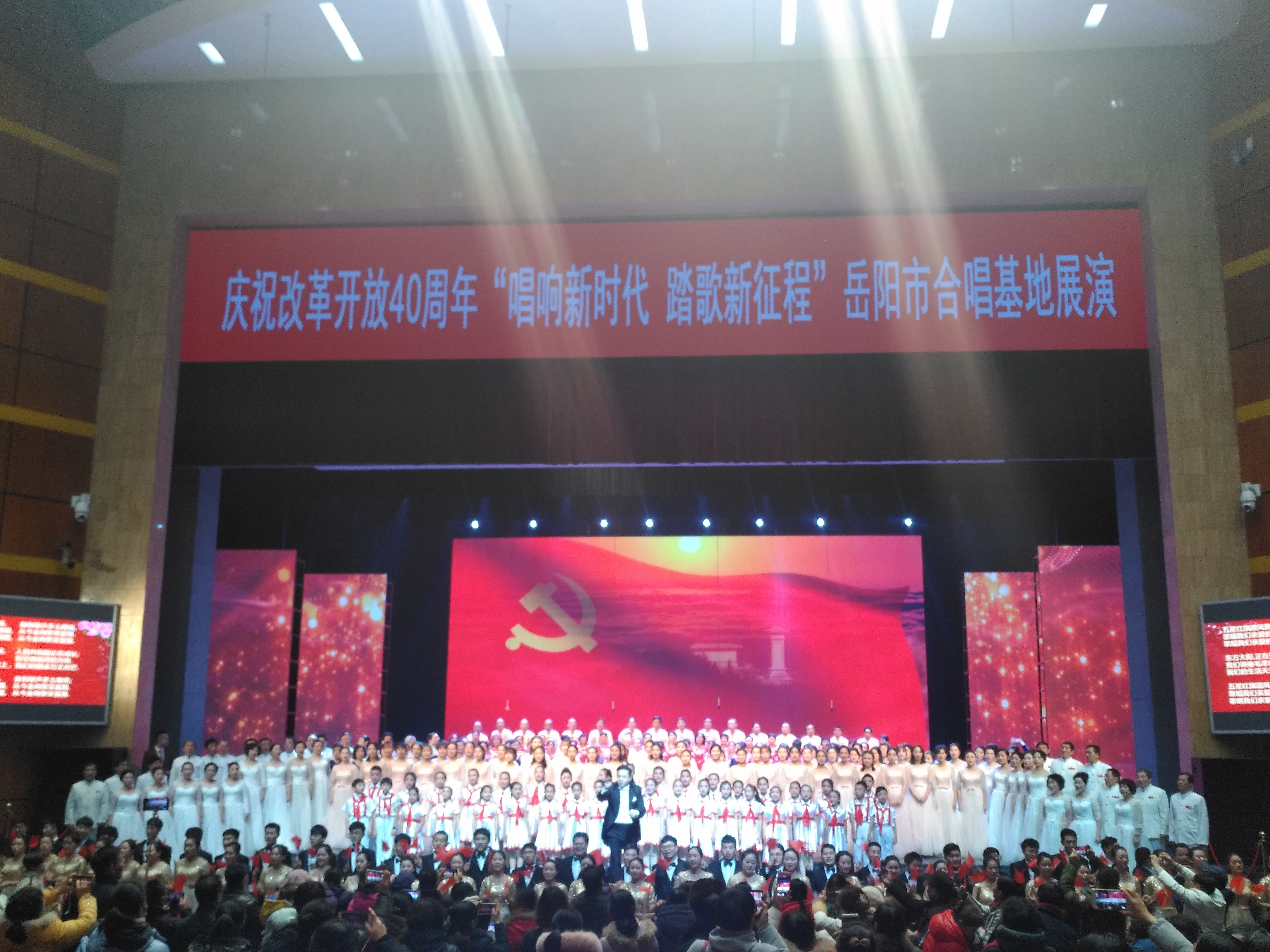 2018年12月28日下午,由中共岳阳市委宣传部、岳阳市广电局主办的庆祝改革开放40周年“唱响新时代、踏歌新征程”——岳阳市合唱基地展演活动在岳阳文化艺术会展中心大剧场隆重举行,beat365手机版官网入口作为全场艺术指导单位,此前不仅为多支参演队伍派出专业老师或研究生进行长期指导,同时还派出了两个合唱团(一个混声合唱团,一个女声合唱团)参加了展演活动,公司师生为岳阳市合唱基地所做的工作以及现场精彩的演出获得了出席展演的领导们的一致好评。