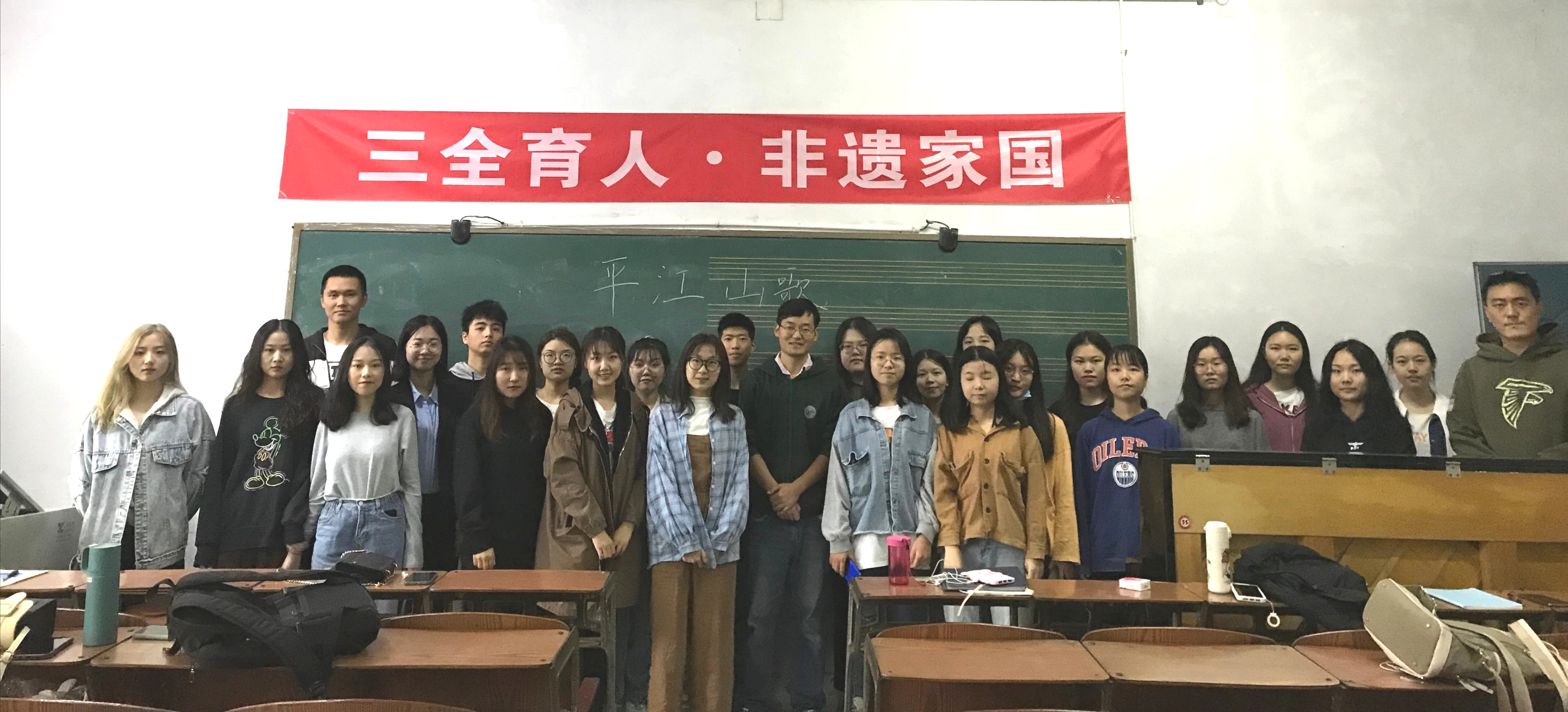 2020年9月17日上午, 公司李强老师在4110教室开展湘北区域音乐课程教学,主讲了湖南省级非物质文化遗产之平江民歌,经理柳青、2018级辅导员刘姣花和2018级38名员工共同聆听了本次课程。