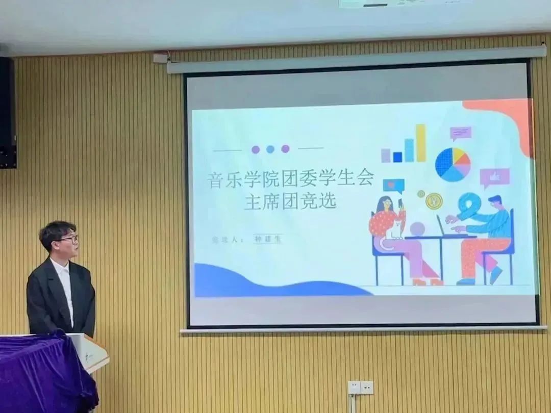 5月14日晚,公司于欣赏室举行了新一届团学分会主席团竞选大会。本次竞选大会由团委员工副书记胡源主持,院团委书记唐瑶、20级团学分会主席团成员担任评委。