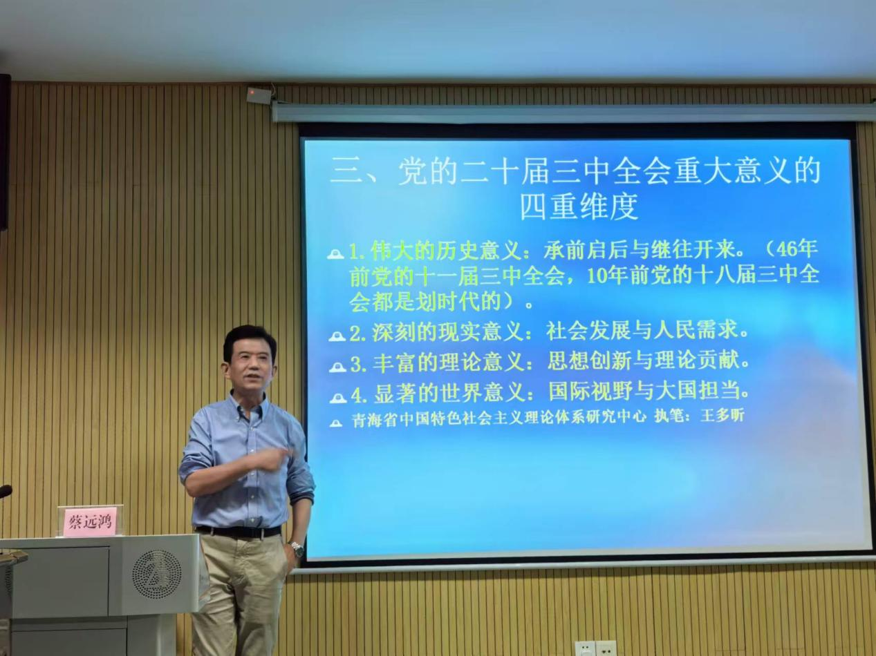 课上,蔡书记深入解读了党的二十届三中全会精神,对中共中央关于进一步全面深化改革推进中国现代化的重要内容进行了详细剖析。他通过对全会精神的深度解读,让同学们对国家的发展战略和前进方向有了更为深刻的理解与认识。在解读的过程中,蔡书记分享了一些在改革浪潮里坚定信念、不断进取的典型故事,以此教导同学们怎样于时代洪流中为实现个人价值、促进国家发展贡献力量。接着,蔡书记强调,高质量发展是全面建设社会主义现代化国家的首要任务。这不仅要求我们紧紧围绕经济建设这个中心,不断深化经济体制改革,为中国式现代化筑牢坚实的经济基础,还需要我们坚持把创新摆在国家发展全局的突出位置,各个领域的创新都是塑造发展新动能新优势的关键所在。最后,为了让同学们更好地理解和认识中国政策的独特优势和价值,蔡书记巧妙地将现中国的政策与美国的政策进行了对比分析。通过这种直观的对比,同学们更加清晰地看到了中国政策在推动国家发展、保障人民福祉方面的积极作用,也进一步增强了对国家制度的自信和对国家未来发展的信心。