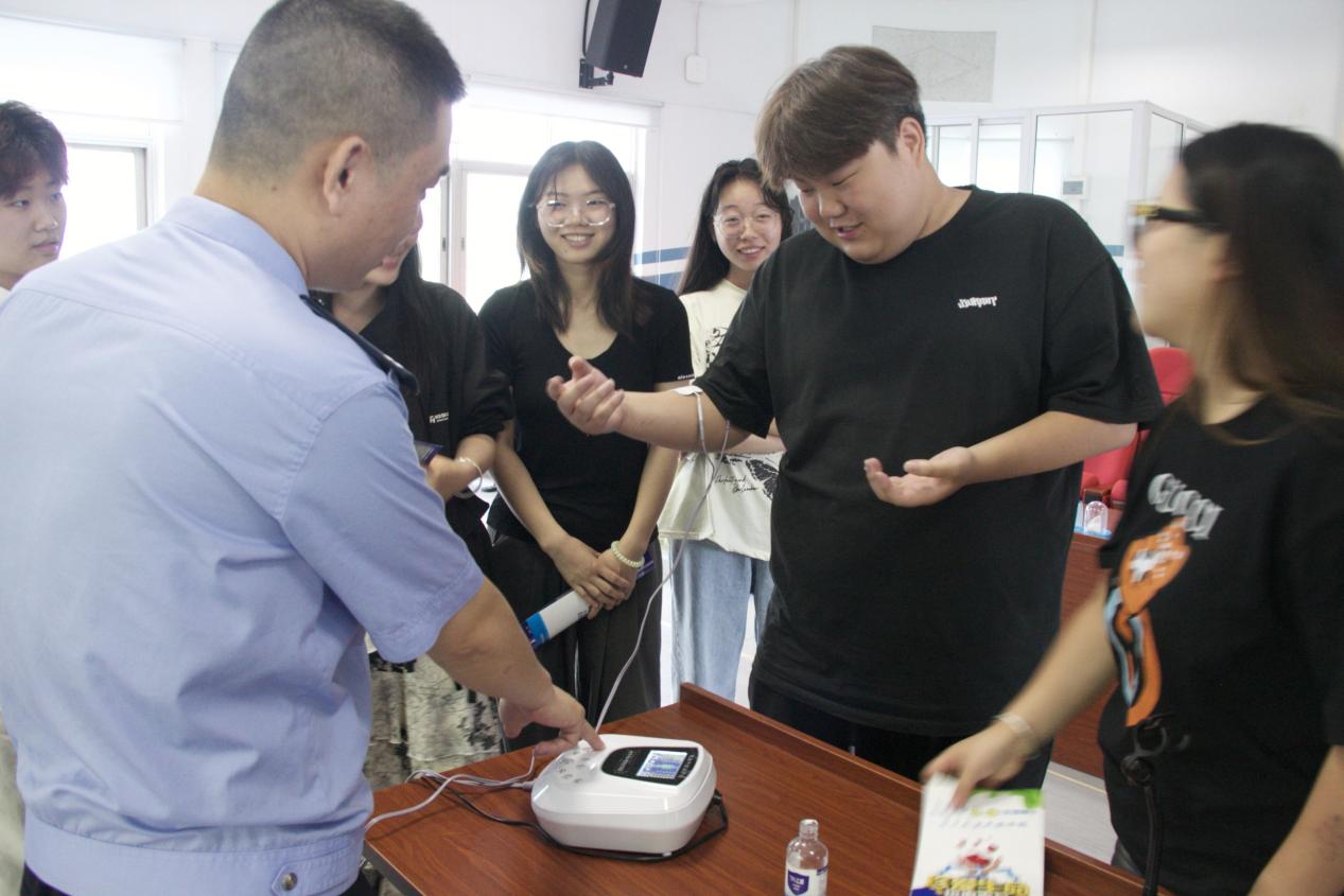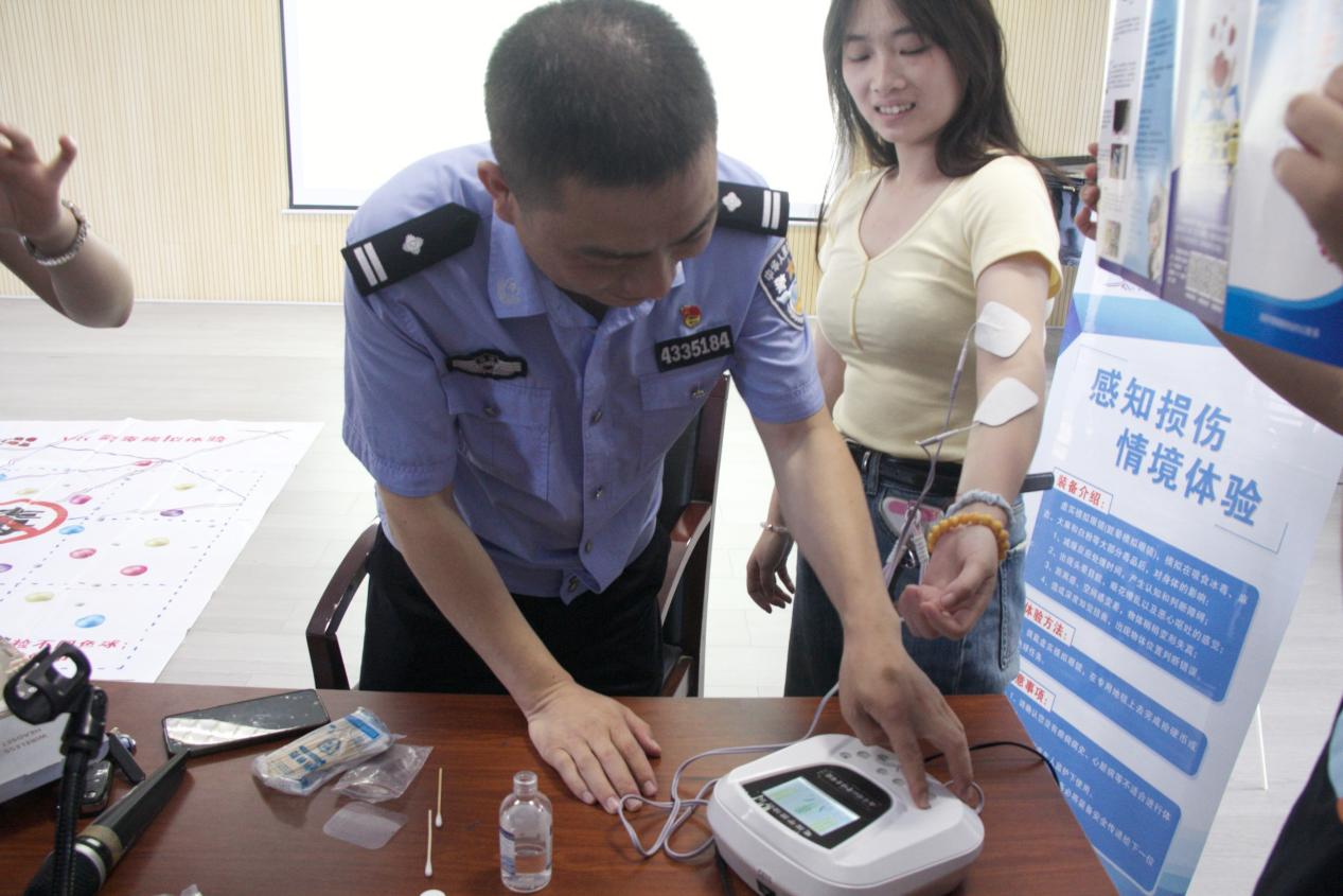 活动现场,肖警官展示了常见毒品仿真样本,涵盖传统毒品及伪装成“奶茶粉”“跳跳糖”等的新型合成毒品,帮助同学们直观识别,避免误入陷阱。他还借助致幻眼镜、听觉干扰装置等科技手段,让同学们亲身体验吸毒后视觉模糊、听觉失真、肢体失控等不良反应,深刻感受毒品对身心的摧残。