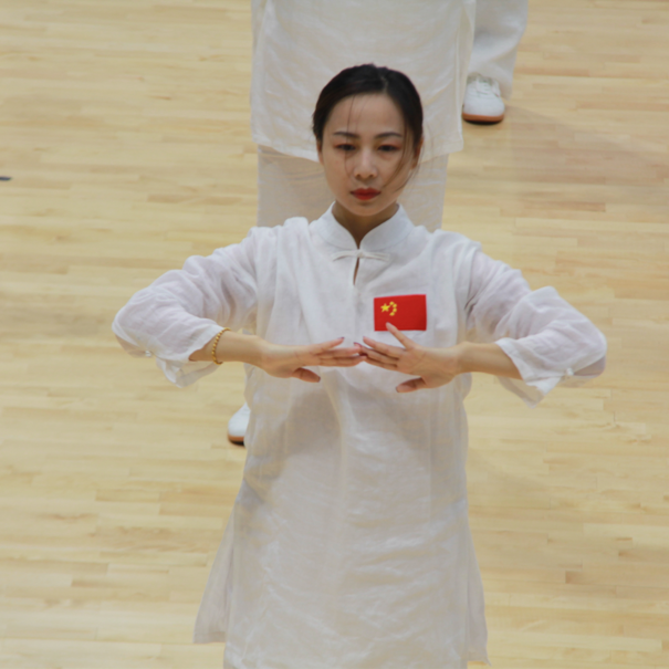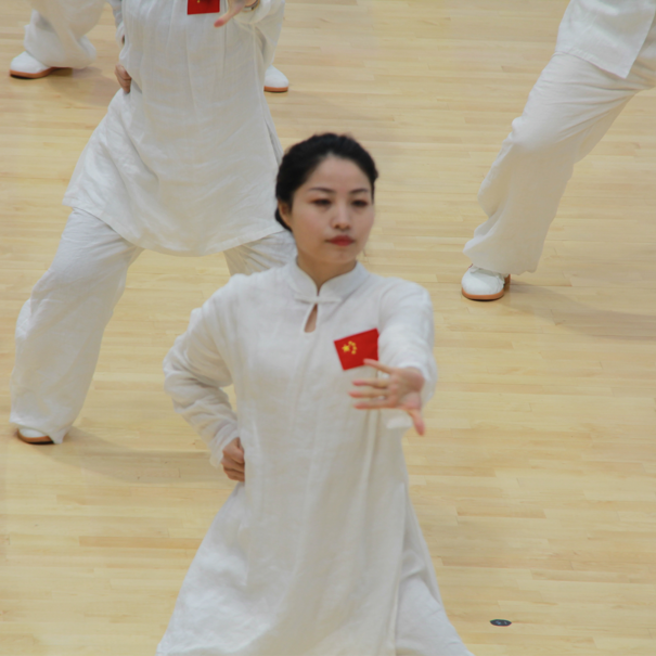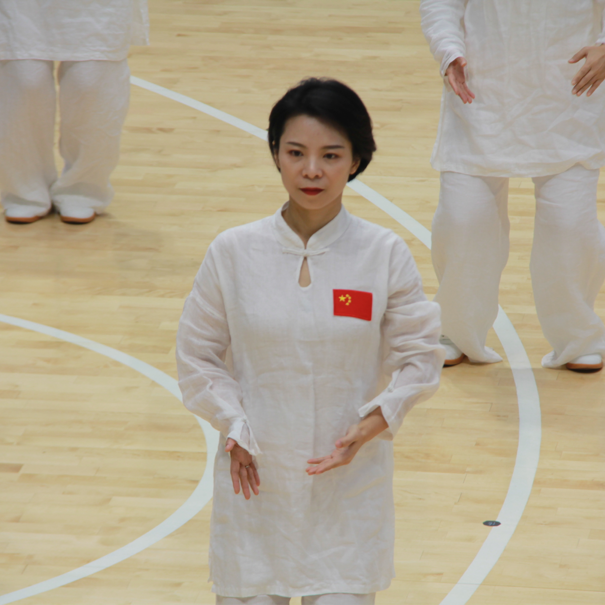决赛场上,公司教师队伍先以一段简短而又精彩的戏曲台步舞开场,将音乐、舞蹈与中华传统文化相结合,展现了公司特有的魅力。随后,伴着八段锦舒缓的音乐,老师们着装整齐,精神饱满,气定神闲,自然地做出双手托天、左右开弓等标准动作。一招一式,动作到位,张弛有度,寓刚于柔。整齐划一的队列,标准舒展的动作,充分将八段锦的健身精神融入到每个细节之中。