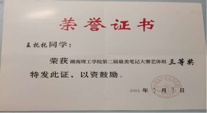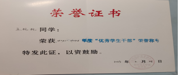 在2023-2024这一年中,该生并没有因此感到自满,而是反思自己与其他优秀的同学有何不足,无论是理论知识还是专业知识,该生遇到不懂的时候认真请教老师,与同学交流,比以往更加认真刻苦。在思想上不断突破和提升自己,积极向党组织靠拢,成为了一名中共预备党员,平时更是向优秀的党员同志看齐。这一年中,以学习为主,在学习方面要求上进,勤奋研读,时刻提醒保持一颗积极向上的心和奋发向上的学习态度。在上理论课的时候,总是能看到该生认真听讲的身影,并在艺术舞蹈概论中取得了98的成绩。大学外语对于艺术生来说是比较难的科目,这一年,该生稳扎稳打,在保证原有的练习舞蹈专业的时间,该生积极加强对外语的学习,遇到不懂的语法或口语时主动询问老师,稳中求进,在英语第一学期和第二学期的期末考试中都取得了95分的成绩。加强学习的同时也没忽视全面发展,工作上担任了学习部部长和2305班助理班主任的职位,积极完成老师下发的任务和协助其他部门完成公司的工作。同时该生十分热心于志愿服务活动,参加了公司组织的暑期三下乡社会实践活动、贫困山区捐赠活动和志愿服务活动,累计志愿服务时常达390多个小时。通过不懈的努力,终于在 2023年综合测评中取得综测第2名的优异成绩,成功评选为“2023学年度国家励志奖学金”获得者。也获得“优秀女生”、“优秀共青团团员”、“三好员工”的称号,第十八届读书节活动中获得了二等奖。在忙碌自己的同时也没有忽视集体,跟随自己的小组成员参加了第十届文化艺术节花漾舞蹈大赛,并取得了第一名的好成绩、和舍友参加了寝室文化节,在手账大赛中取得了三等奖的成绩、并和自己的工作伙伴参加了公司的“互联网+”创新创业获得了优胜奖。