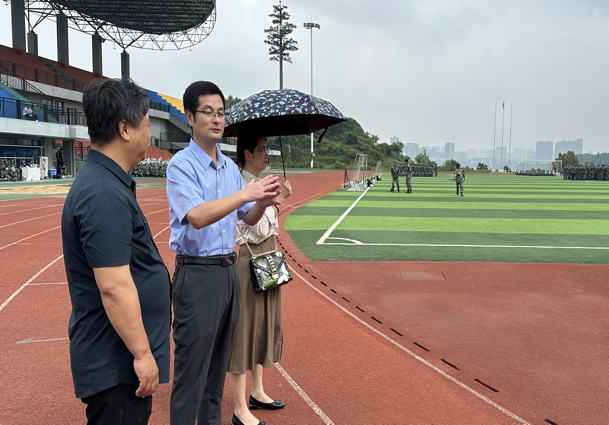 公司领导老师们走进南院田径场军训场地,向带训教官们询问了军训工作安排,对他们的辛勤付出表示衷心的感谢,对员工积极参训的态度点赞,鼓励员工们要听从指挥,勇于克服困难,敢于挑战自我。