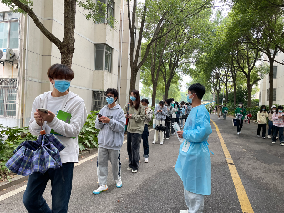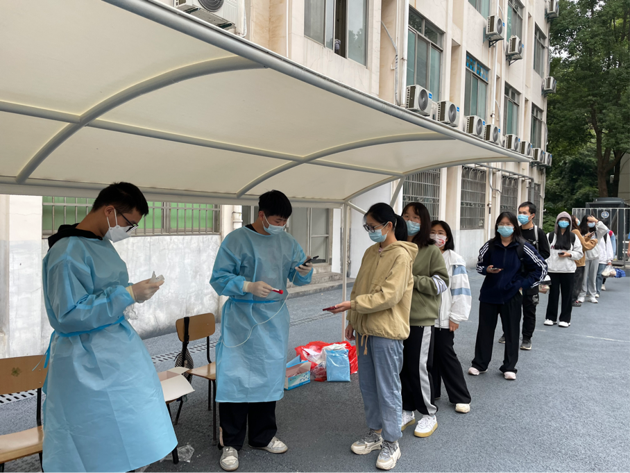 采样工作现场,党员同志们迅速完成核酸检测点的布置,并维持排队秩序,引导大家测量体温,戴好口罩,保持间距,信息登记等志愿服务,与医护人员密切配合,竭力减少人员的排队时间,争取在最短的时间内完成检测任务,筑牢疫情防线,守护大家的安全。同时,向正在排队的代检人员宣传防控政策和知识,引导同学们不信谣、不传谣,积极配合核酸检测。公司党员同志热血的逆行身影,铸成了一道道靓丽的青春风景,让每一个接触他们的人都备受感动,倍感温暖,大家纷纷为他们的付出点赞,向他们致敬。