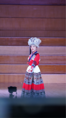 两年多的时光里,她始终秉持“把每一门课都吃透、把每一次机会都攥紧”的较真劲儿。她融专业成绩、竞赛突破与综合素养于一身,斩获国家奖学金——这份荣誉是对她日夜兼程、全力以赴的最高褒奖,更是她在声乐领域扎根生长的坚实底气。身兼数职的她,对时间的管理十分精确:六成精力锚定专业深耕,日均3小时练琴筑牢“压舱石”,从气息到声线反复雕琢。每晚19-21点深耕理论,将零散知识点织成系统网络,稳步实现从“会唱”到“懂唱”的进阶。剩余两成时间聚焦实践,周末攻坚竞赛、员工活动与志愿服务项目,课间和午休等碎片时间对接师生需求,让每一份付出都掷地有声。
