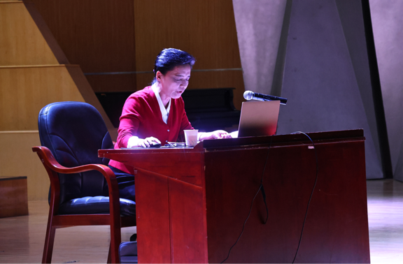 任欣欣首先介绍了岳阳市的基本情况。并从“得天独厚的自然优势、厚重悠长的人文历史、光辉闪耀的红色资源”三个方面具体讲解了岳阳市发展中的资源禀赋优势。随后,任欣欣就“坚定文化自信,铸就社科事业繁荣发展”内容作详细讲解。她指出,社科事业繁荣发展就要准确把握社科工作面临的时代机遇和问题。她提到目前岳阳市社科事业面临着新时代使命任务、社会管理向社会治理转变、社科工作大有可为、深厚的历史文化底蕴、良好的工作基础等时代机遇。