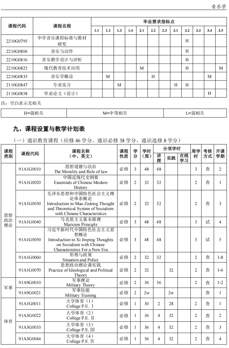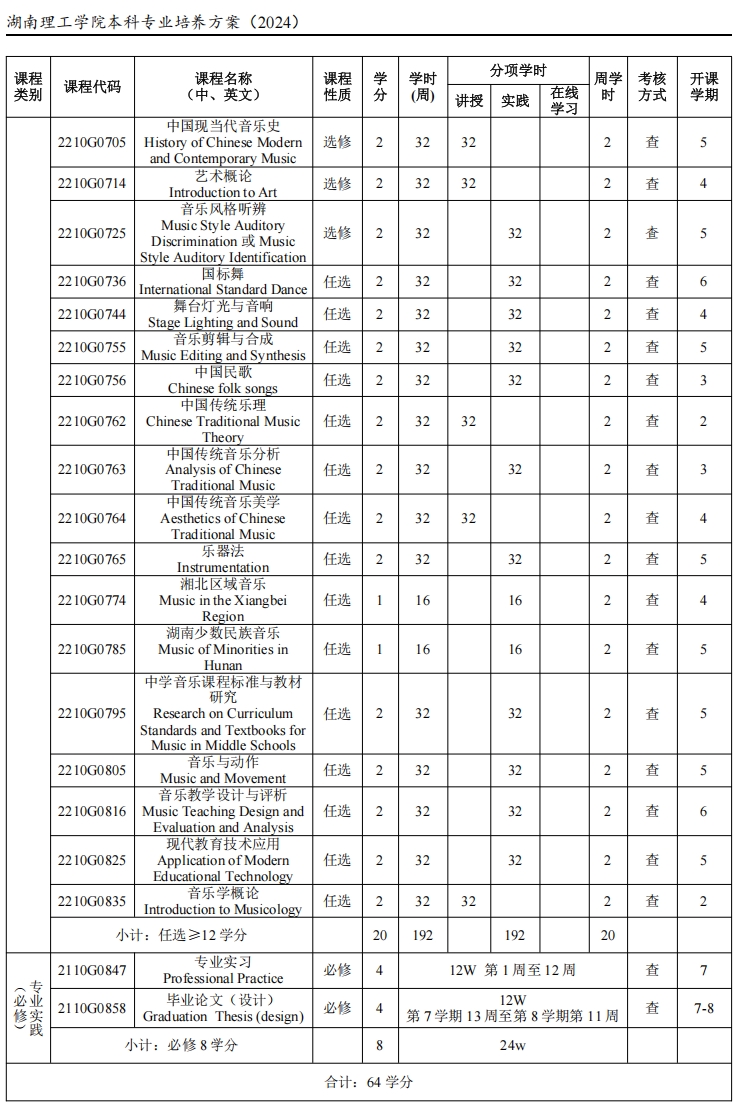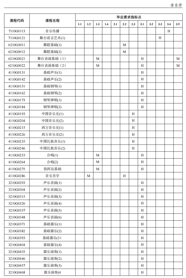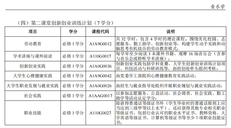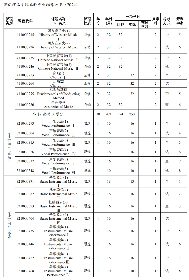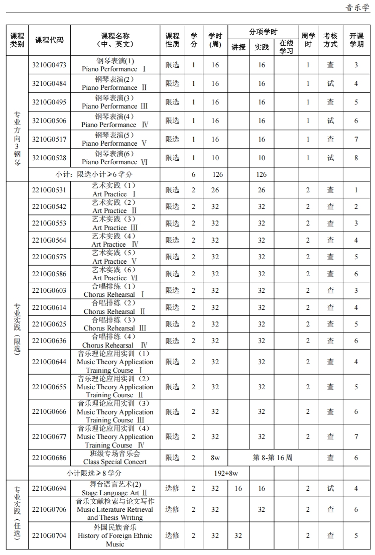 (2)、中国音乐史(2)、西方音乐史(2)、中国民族音乐(2)、合唱(2)、音乐美学
