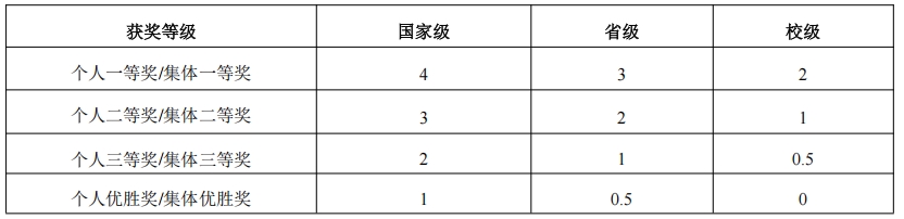 要求员工通过参加校内或校外与专业直接或间接相关的学科及专业竞赛,赋分须由员工个人申报,教辅人员审查证书原件,赋予相应学分。折算学分数分别为:
