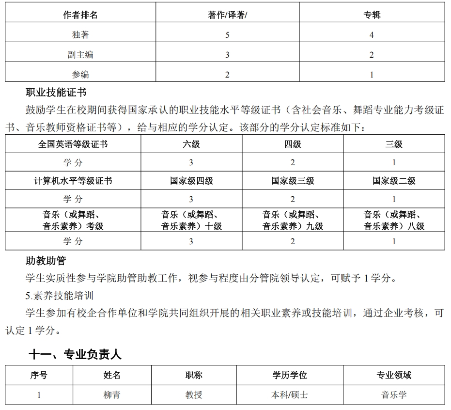 包括在校期间完成学科及专业竞赛、老员工创新实验类项目、音乐活动观摩等训练活动、公开发表学术论文或作品、职业技能证书以及助教助管,具体学分认定如下: