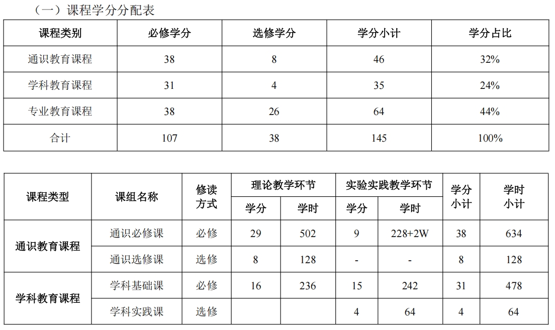(一)基本学制 4 年,弹性学习年限 3-6 年,按学分制管理。