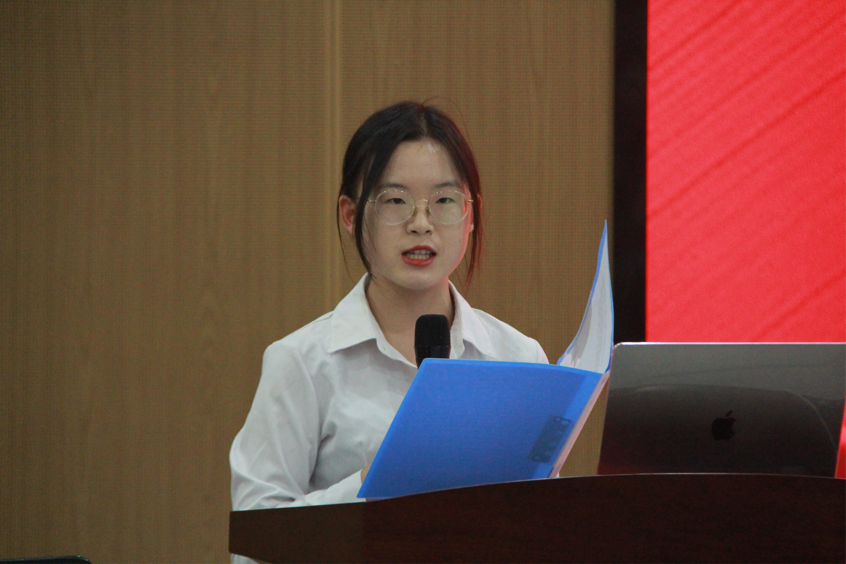 仪式第二项,物电公司周畅书记发表讲话。她对本次开班仪式议程做了简单介绍,并对同学们寄予厚望,愿大家在新的党课形式中有所收获。学党史,跟党走,用党的理论知识武装头脑,不断提高自身能力,锤炼过硬作风,坚定理想信念。