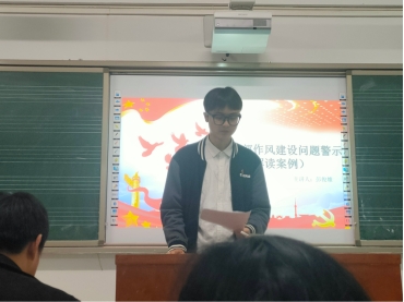 团学分会执行主席简丽娟带领大家学习了《省学联下发的学习资料》并和大家分享了自己在学习上的经验,员工副书记彭俊雄、执行主席徐永畅、员工副书记张茜分别对员工干部作风建设问题警示教育做案例解读、宣读了《关于学联员工会工作人员改进工作作风服务同学的若干规定》和《我为青年做实事活动倡议书》。