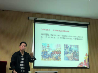 刘创教授以中国近代人民的受压迫与抗争史为导入,介绍了“为中国人民谋幸福,为中华民族谋复兴”的相关内容,突出强调中国有能力实现这个目标的原因。随后,刘创教授讲述了习近平主席的个人经历与光辉事迹,强调了十九大后,习近平总书记到革命老区重温入党誓词的事件,凸现了党的初心与恒心:与人民同呼吸,共命运,心连心。刘创教授还提出了当代青年要积极向党组织靠拢,发奋成才,充分发挥先锋模范带头作用,在平常工作、学习生活中争做表率,担当作为。