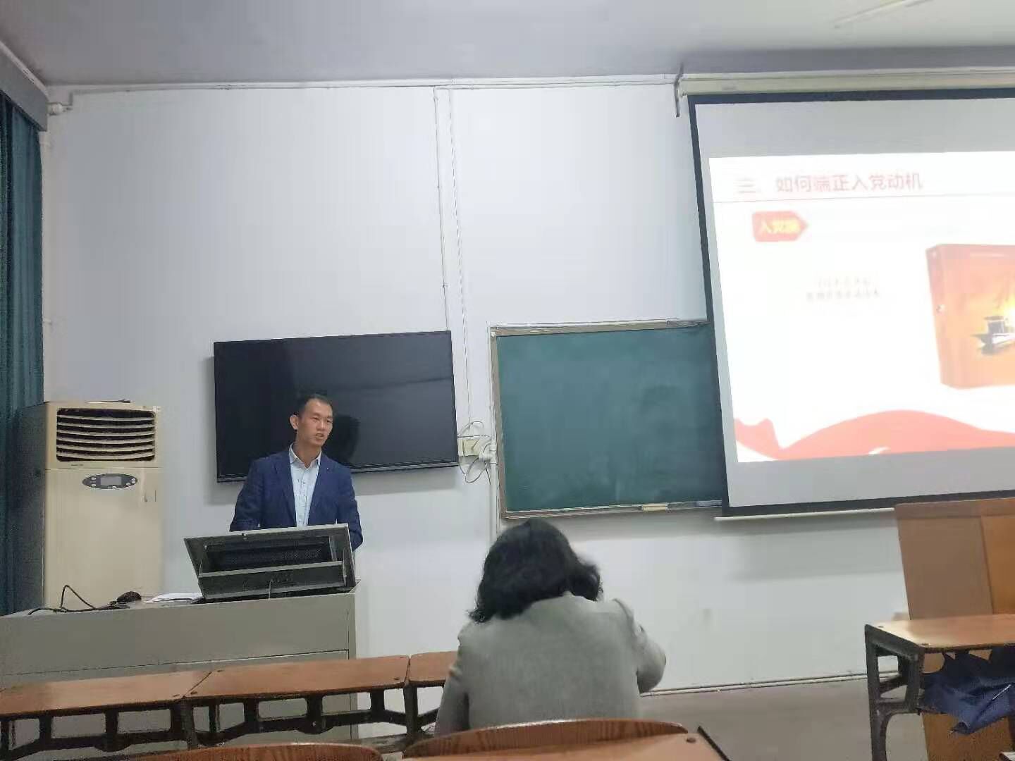 唐老师从“什么是入党动机”、“当代老员工入党动机的类型”、“如何端正入党动机”三个方面娓娓道来,首先为同学们讲解了入党动机的含义,希望同学们可以端正自己的入党动机,明确自己的入党目的,并用了一系列的真实事例告诉大家,入党动机应该摆正,应该纯洁。紧接着,他还讲到了在国家、党和人民需要的时候,我们要志愿到最艰难、祖国最需要的地方去奉献自己的青春,有这样正确的入党动机和正确的学习态度将会对以后人生的发展起到至关重要的作用。此外,他还强调了我们要加强党的理论学习,积极参加党组织的活动和社会实践活动,加强党性锻炼,提高党性修养,认真了解党的历史、学习党的理论、践行党的宗旨,以积极向上的思想和行动不断向党组织靠拢。