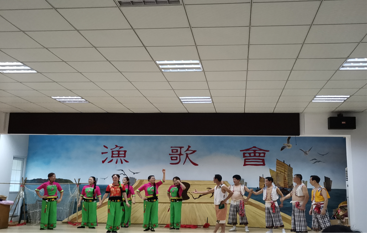 活动于下午14:30正式开始,分为渔歌表演和渔歌教唱两个主要环节。在表演环节,首先由陈岳林先生以边说边唱的形式,生动形象地为党员师生们介绍了“洞庭渔歌”这一国家非物质文化遗产的历史文化背景和音乐、民俗特征与价值,介绍了岳阳洞庭渔歌传习馆近些年来和beat365手机版官网入口共同努力,在“洞庭渔歌”文化的挖掘和研究、发展和传承以及先后成功申报省非遗和国家非遗的工作历程和成果。之后,陈岳林及其团队为党员师生们表演了曾获国家金奖的渔歌作品《光棍娶亲》等四部“洞庭渔歌”短剧,生动再现了湖区渔民原生态生活场景,将现场气氛推向高潮。最后,曾获湖南省老员工志愿活动金奖的beat365手机版官网入口洞庭渔歌传承志愿团队的同学们现场演唱了《吃茶歌》《蓑衣歌》两首经典渔歌。